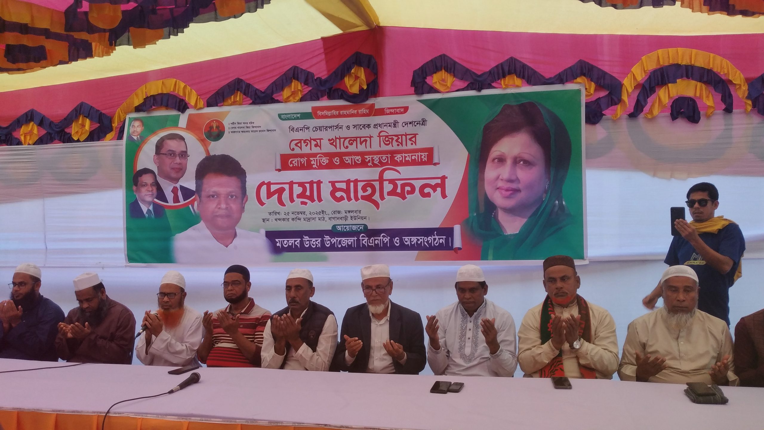 বেগম খালেদা জিয়ার সুস্থতা এবং দীর্ঘায়ু কামনায় মতলব উত্তরে দোয়া ও মিলাদ মাহফিল অনুষ্ঠিত হয়েছে। মঙ্গলবার (২৫ শে নভেম্বর) বিকেলে বাগানবাড়ি ইউনিয়নের খন্দকার কান্দি মাদ্রাসা মাঠে এই মাহফিলের আয়োজন করা হয়।